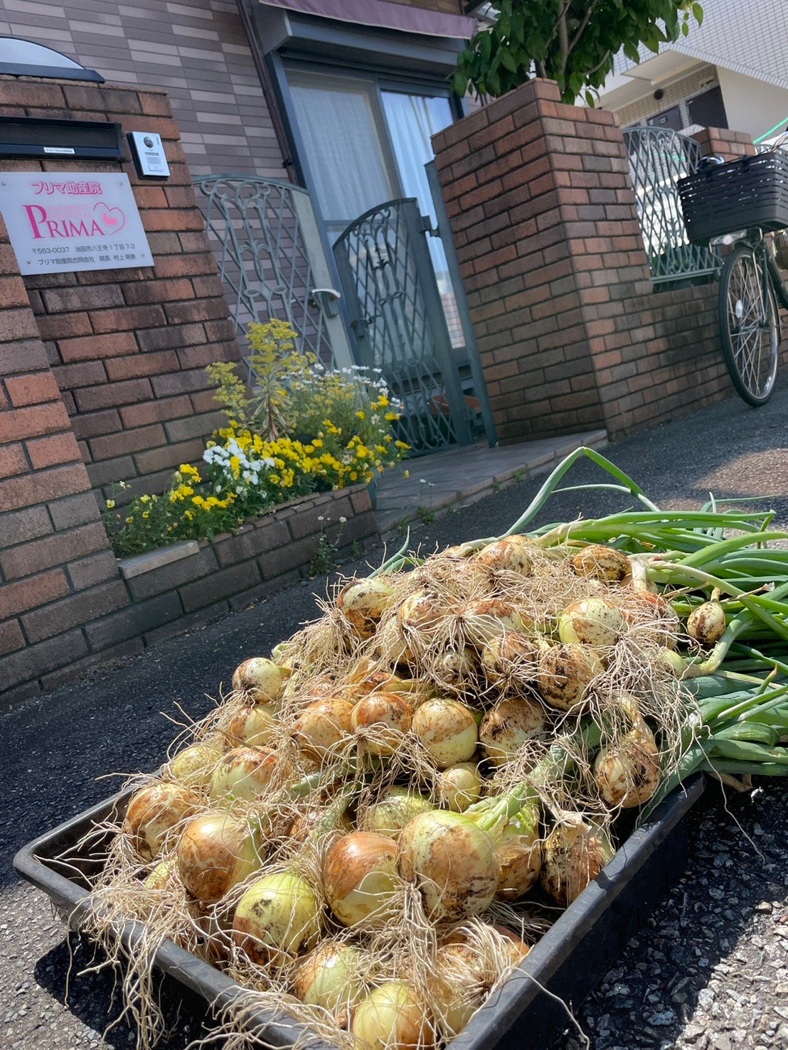 現在の場所に引っ越してから、助産院のお庭で、美味しいおいしいお野菜などを育てています。 1か月前くらいに玉ねぎ、先日は赤玉ねぎの収穫! 甘味がしっかりと感じられる、おいしい玉ねぎでした。
